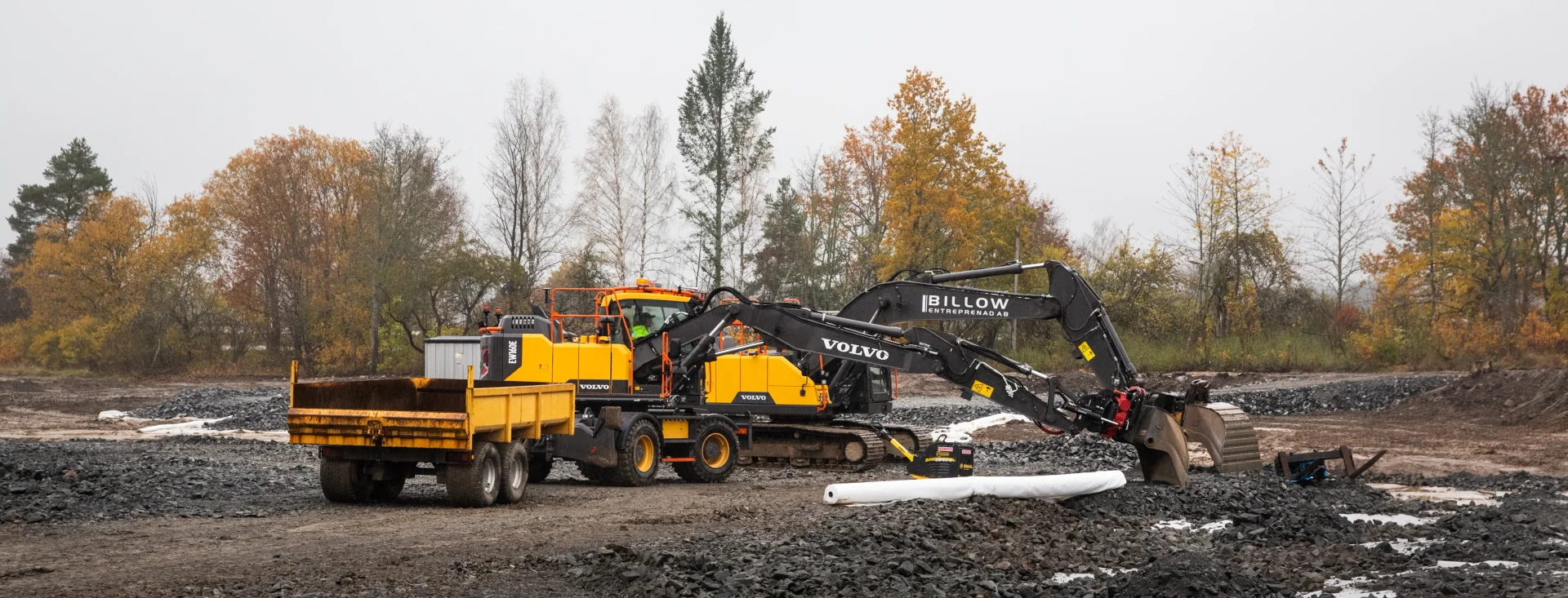 Entreprenadmaskiner med förare, schakt och kranbilar, projektledning, schaktentreprenader, projektlösningar för deponi och återvinning, krossmaterial.